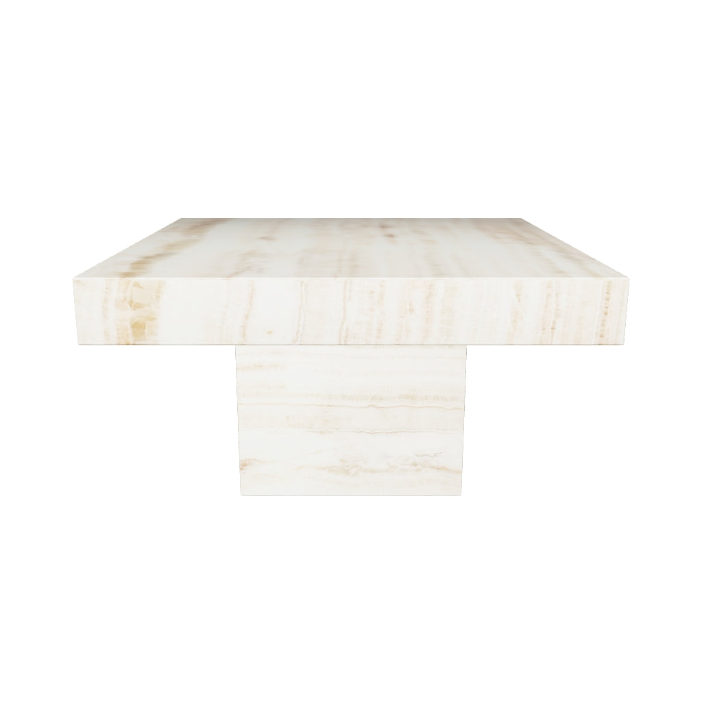 Carved from warm-toned onyx with natural beige striations, the Sahara Coffee Table reveals the layered beauty of dessert stone. Its architectural form emphasises balance and stillness, creating a calm focal point within a room.